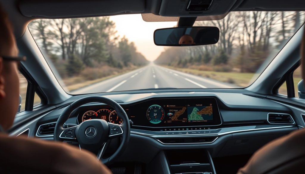 Voice control lets drivers do many things with simple voice commands. They can change the music or set their route. Gesture recognition lets drivers control things with hand movements. This means they don’t have to take their hands off the wheel.