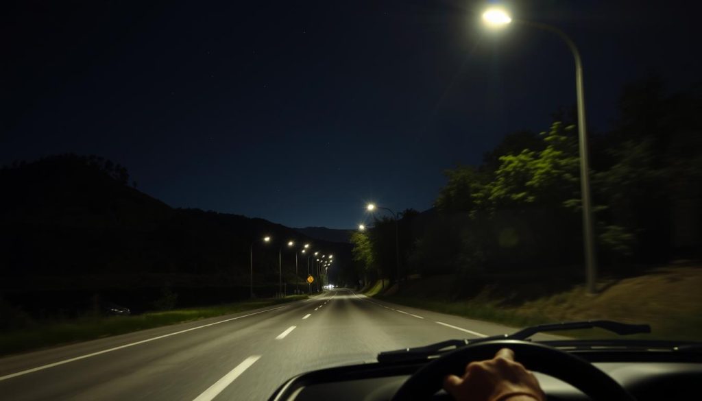 Using driving aids and technology can really help. Night vision systems, high-beam headlights, and adaptive lighting make driving at night safer and less scary.